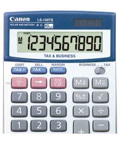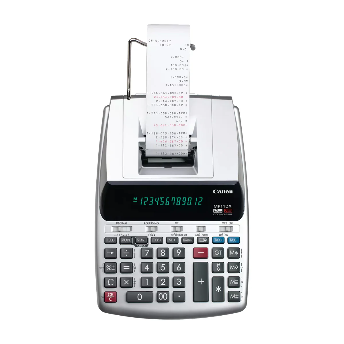 Funciones sofisticadas en un diseño compacto, para el profesional ocupado. La Canon MP11DX-2 combina a la perfección funciones útiles y sofisticadas con un diseño compacto, ideal para el profesional ocupado. Esta calculadora de escritorio con impresión a dos colores incorpora teclas de cálculo de margen de beneficio que permiten calcular el precio de venta o el descuento según el coste y el margen de beneficio deseado. Además, el reloj y el calendario integrados permiten ver la hora y la fecha en la pantalla o imprimirlas.