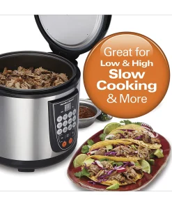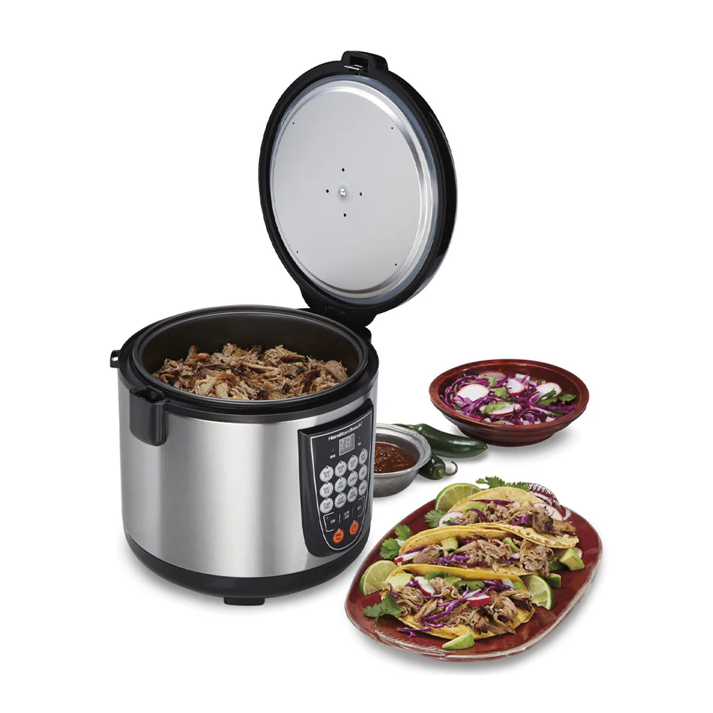 Una cocina, infinitas posibilidades. Ahorra espacio de almacenamiento y disfruta de la máxima versatilidad de cocción con la MultiCooker Digital de Hamilton Beach. Con una capacidad de 4,5 cuartos, esta olla multiusos combina las funciones de una olla de arroz, una olla lenta, una vaporera de alimentos y más en un aparato compacto. Los controles intuitivos del botón hacen que el cambio entre los métodos de cocción sea sin esfuerzo. Una opción de inicio retrasado en determinadas funciones y temporizador programable permiten aún más flexibilidad.