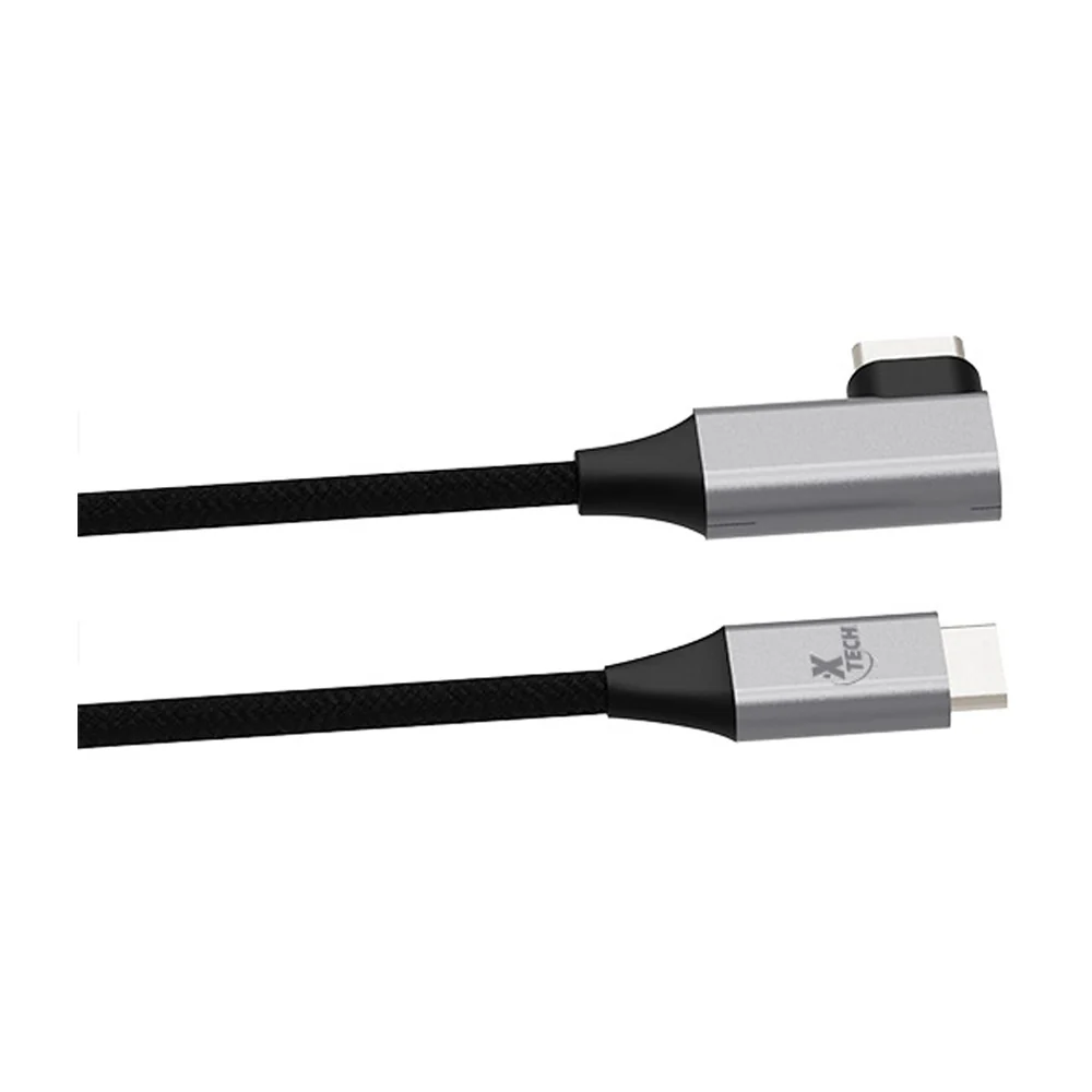 Un conector en forma de L en un extremo para enchufarlo fácilmente en puertos de difícil acceso sin doblarlo ni forzarlo excesivamente.